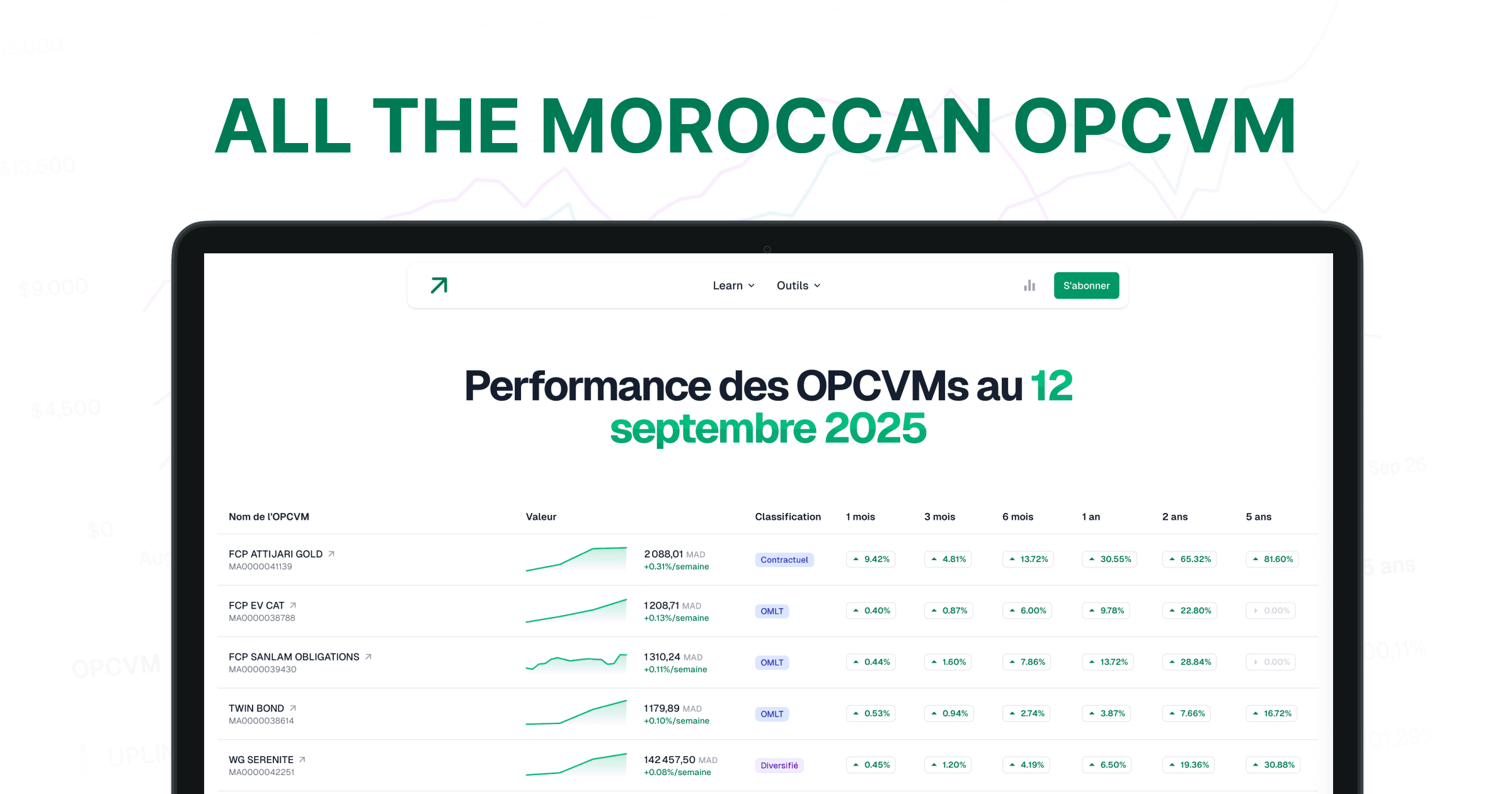 - Base de données complète des OPCVM : Accédez à une base de données détaillée et à jour de tous les OPCVM marocains. Consultez les informations clés, les performances historiques et les profils de risque pour chaque fonds.