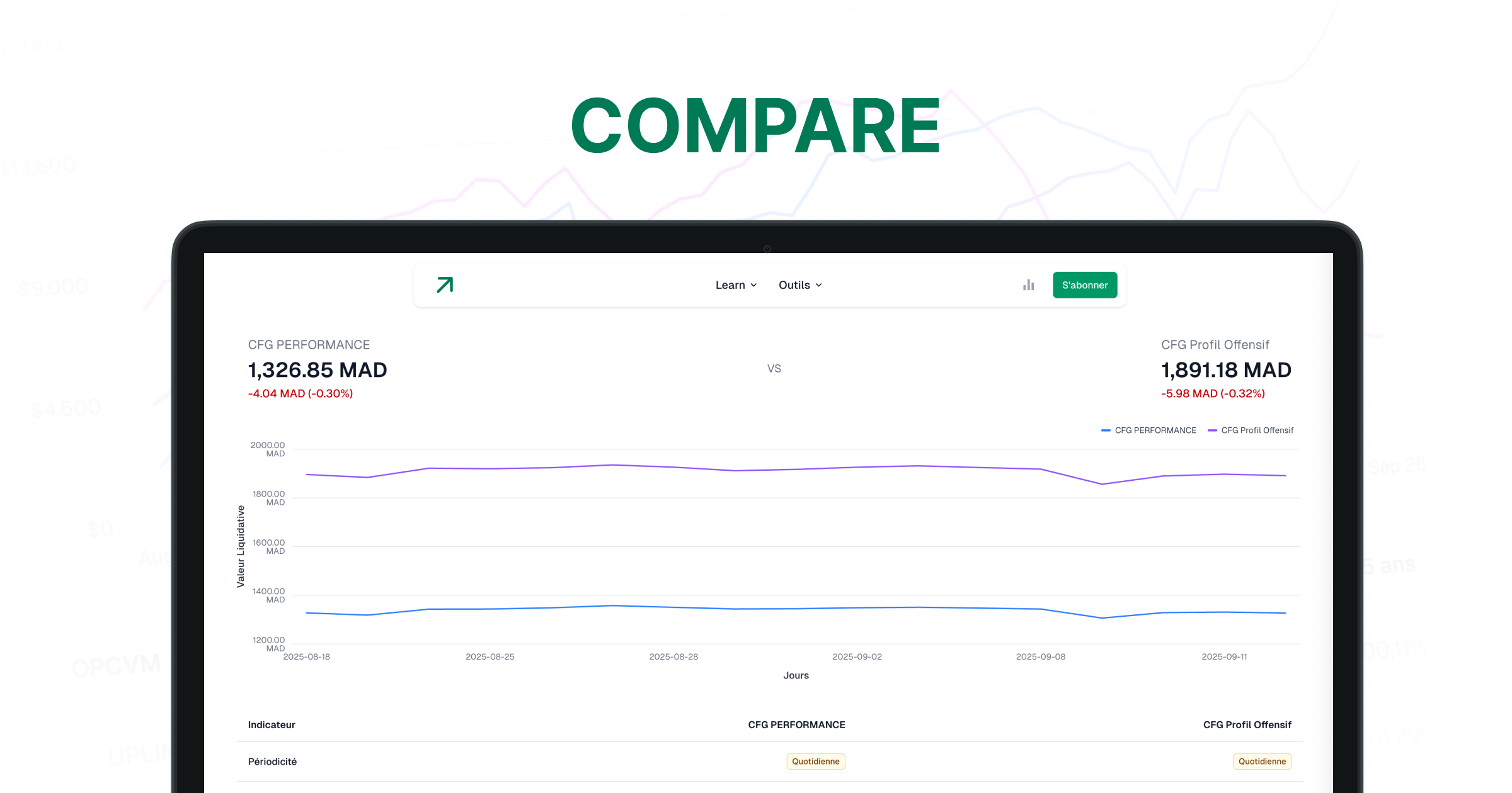 - Base de données complète des OPCVM : Accédez à une base de données détaillée et à jour de tous les OPCVM marocains. Consultez les informations clés, les performances historiques et les profils de risque pour chaque fonds.