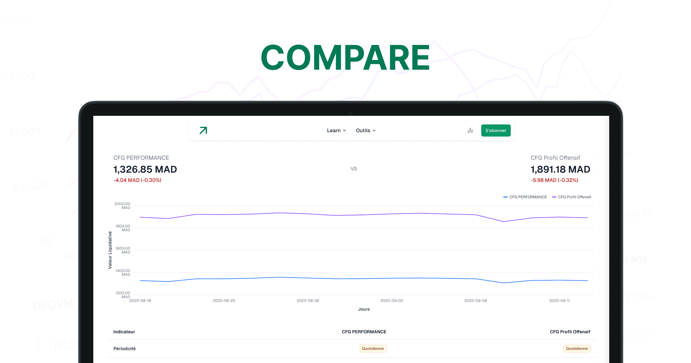 - Base de données complète des OPCVM : Accédez à une base de données détaillée et à jour de tous les OPCVM marocains. Consultez les informations clés, les performances historiques et les profils de risque pour chaque fonds.